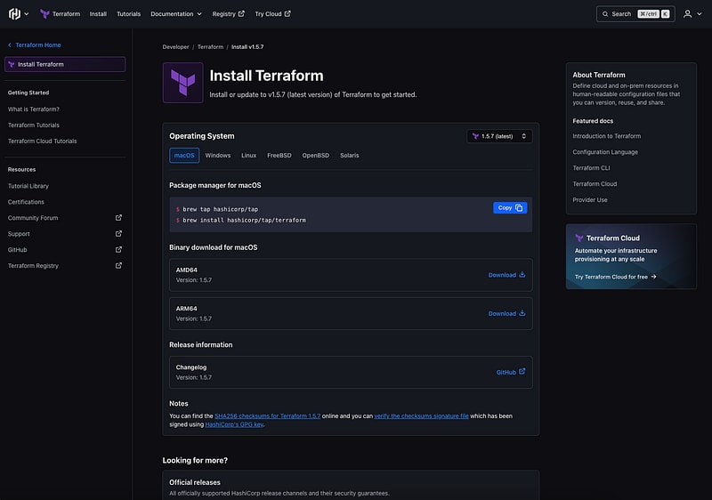 同時在這邊我們為大家準備了3種不同作業環境的安裝方法,可以參考後面的文章。參考網址:https://developer.hashicorp.com/terraform/downloads