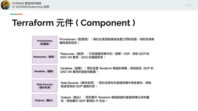 Terraform 元件 ( Component ):各自元件的用途與使用方式。